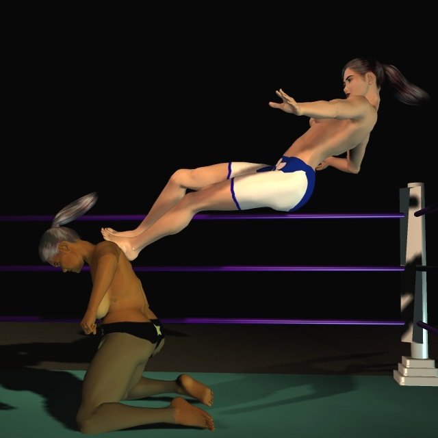 The force of the flying kick threw the Algerian forward, sprawling onto her face on the canvas as Sancha landed safely on her feet in the centre of the ring.