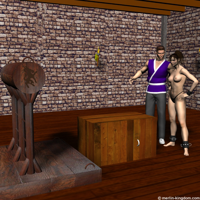 good fucking (that's the "Cream" part). I am about to shoot a scene where one of the woman's staff is punished for stealing from the business. The "victim" is called Nicole, she's recently arrived from France and her English is still pretty weak. But, she has a sweet French accent and seems to understand what I'm saying to her, so it's cool! The action takes place in the Mistress's dungeon. I explain to Nicole that she will be tied to the wooden box for the scene where she is whipped by the Mistress. |